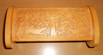 HAND-CARVED WOOD BOX WITH HUNTING SCENE, PROBABLY EUROPEAN