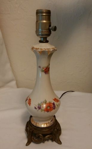 Title (ebay affiliate link): Beautiful Vintage Hand-painted Porcelain table/desk Lamp Floral Gold Trim Brass