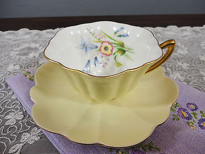 Shelley Wild Flowers Floral Stratford Yellow Bone China Teacup and Saucer