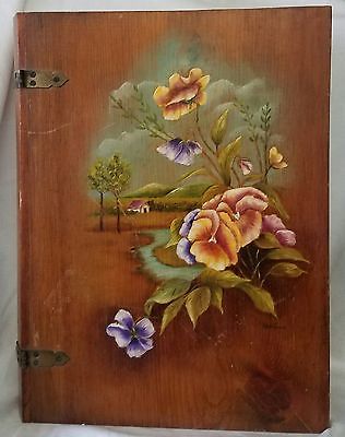 Lrg Vtg Ozark Mountain Folk Art Book/Bible/Letter Box/Lap Desk Hand Painted Wood