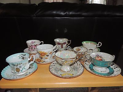 8-ROYAL-ALBERT-QUEEN ANNE-AYNSLEY-ROYAL HALSEY & MORE-TEA-CUPS-AND-SAUCERS-BONE-