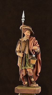 Vintage hand carved and painted wooden figure of a night watchman. 8" tall