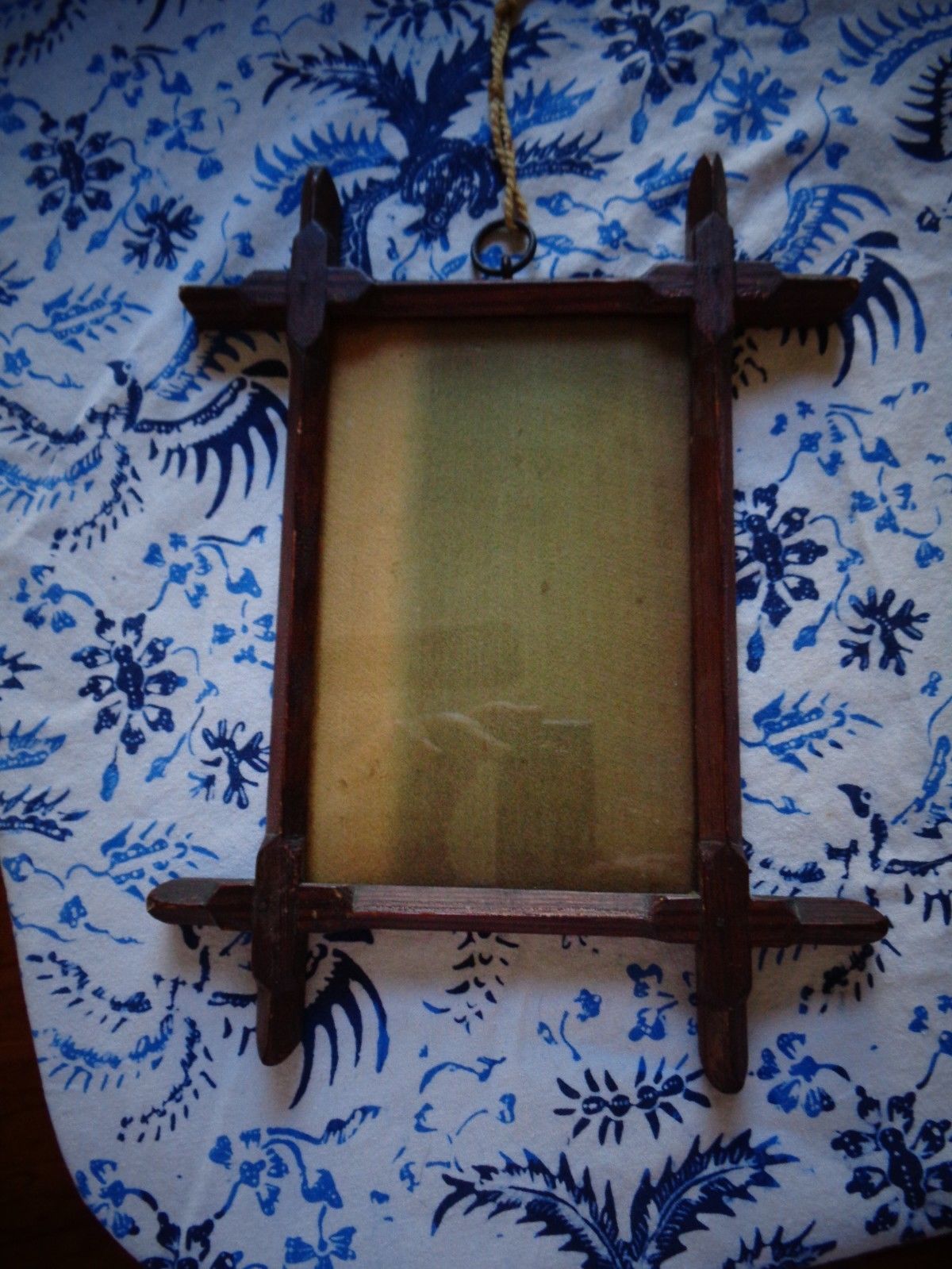 Antique Folk Art Wood Oxford Frame Cross Corner