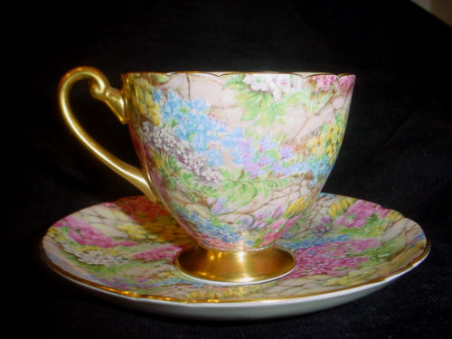 Title (ebay affiliate link): SHELLEY England Tea Cup & Saucer ROCK GARDEN Chintz Pattern EXCELLENT!