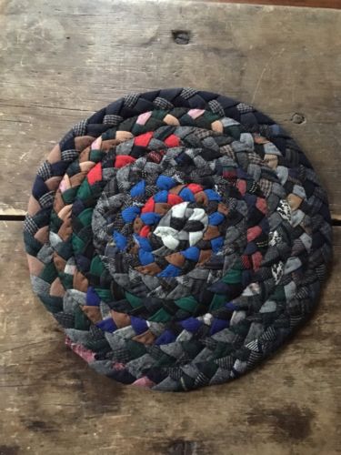 Title (ebay affiliate link): Old Vintage Wool Braided Table Candle Rug Mat County Colors AAFA #2