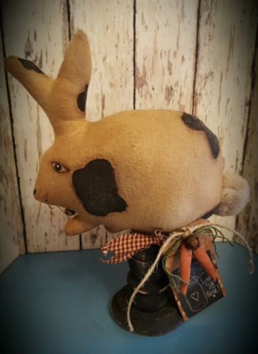 Title (ebay affiliate link): Primitive Black & White Bunny Rabbit w/ Carrots Make-Do ~Spring ~ Easter~
