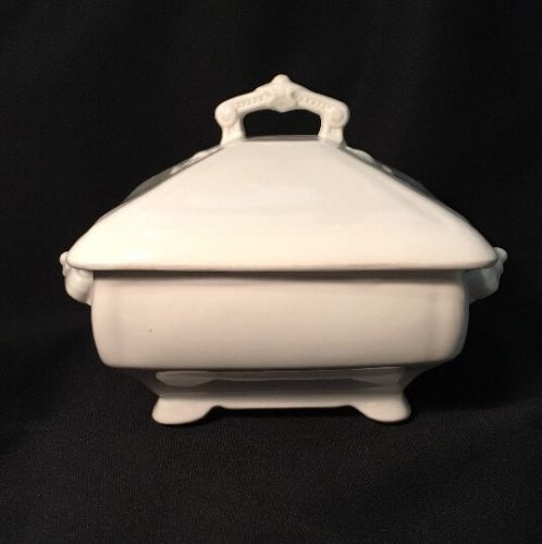 Title (ebay affiliate link): Antique T & R Boote Royal Ironstone Covered Lidded Dish Handled Footed White