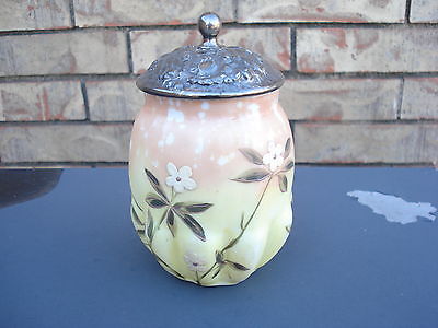 Antique Victorian Biscuit Jar Hand Blown and Painted Silver Lid