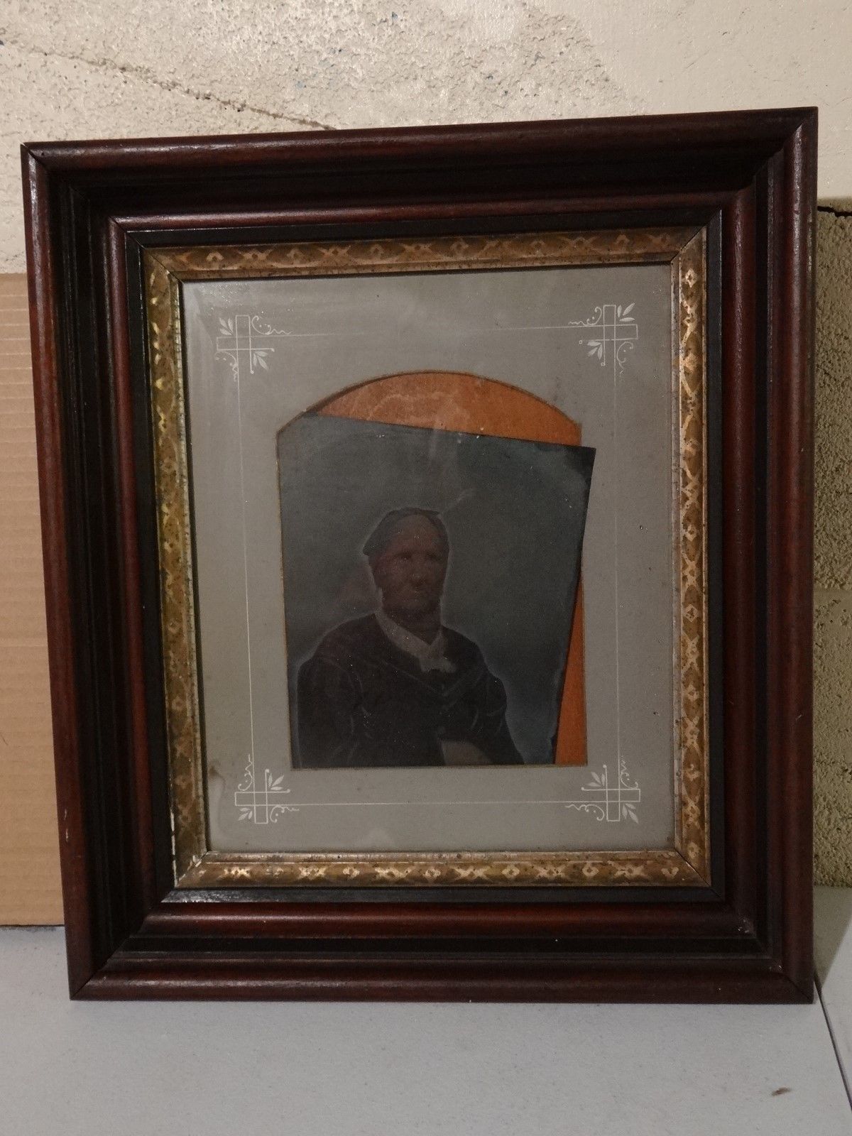 Walnut Victorian Eastlake deep Picture Frame holding tintype photo