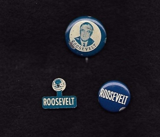 Title (ebay affiliate link): 3 FDR Franklin D Roosevelt 1940s campaign button photo litho, ROOSEVELT