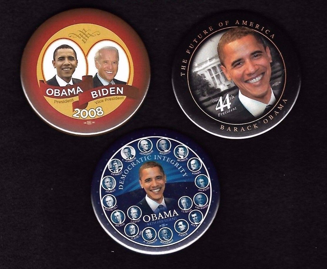 Title (ebay affiliate link): 3 different BARACK OBAMA photo buttons from 2008: Dem Presidents, jugate, 44