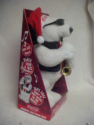 Title (ebay affiliate link): NIB COCA COLA ANIMATED JAZZ POLAR BEAR 17 IN. PLAYS SAX