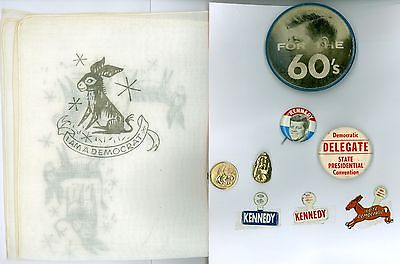 5 Vintage 1960 President John Kennedy Political Pinback Buttons 1 Hanky 3 Tabs