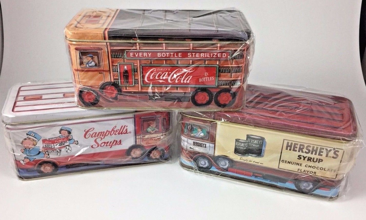 Title (ebay affiliate link): 3 Reproduction Vintage Advertising Tins Coca Cola Campbells Hershey