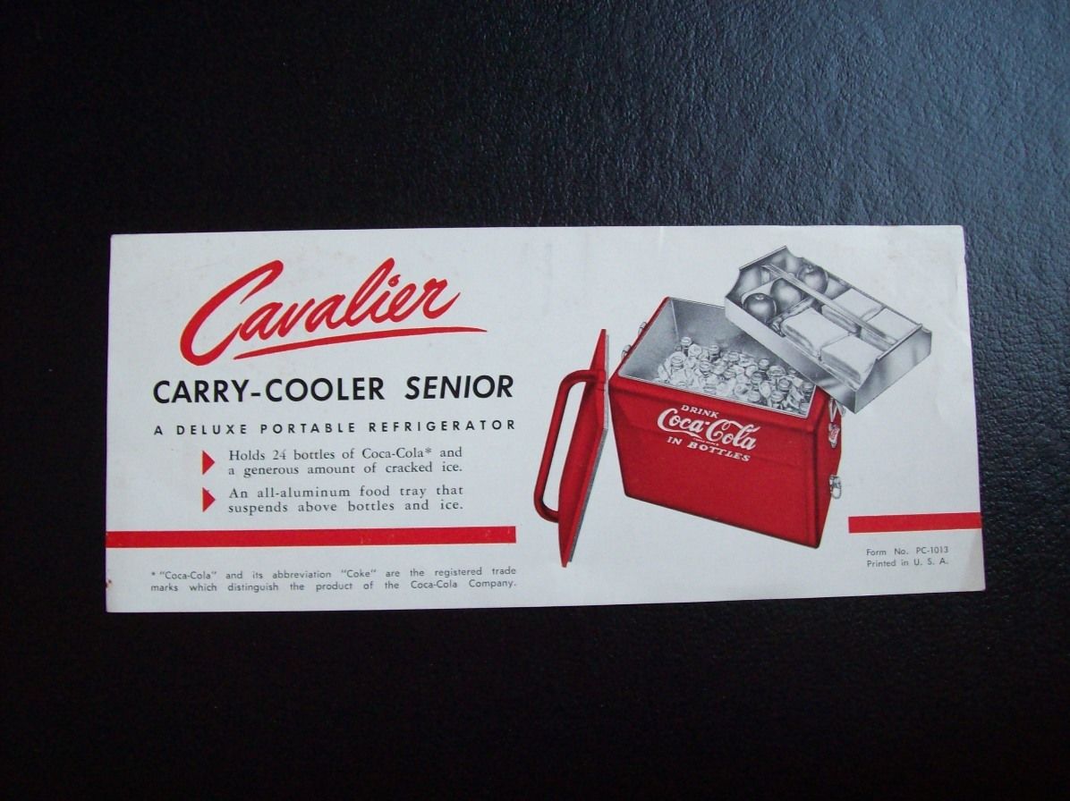VINTAGE COCA COLA CAVALIER CARRY-COOLER ADVERTISING INSERT