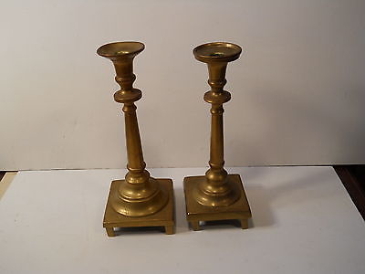 ANTIQUE BRASS CANDLE STICKS MISMATCH PAIR HEAVY 7 3/4 LBS 11 IN HIGH