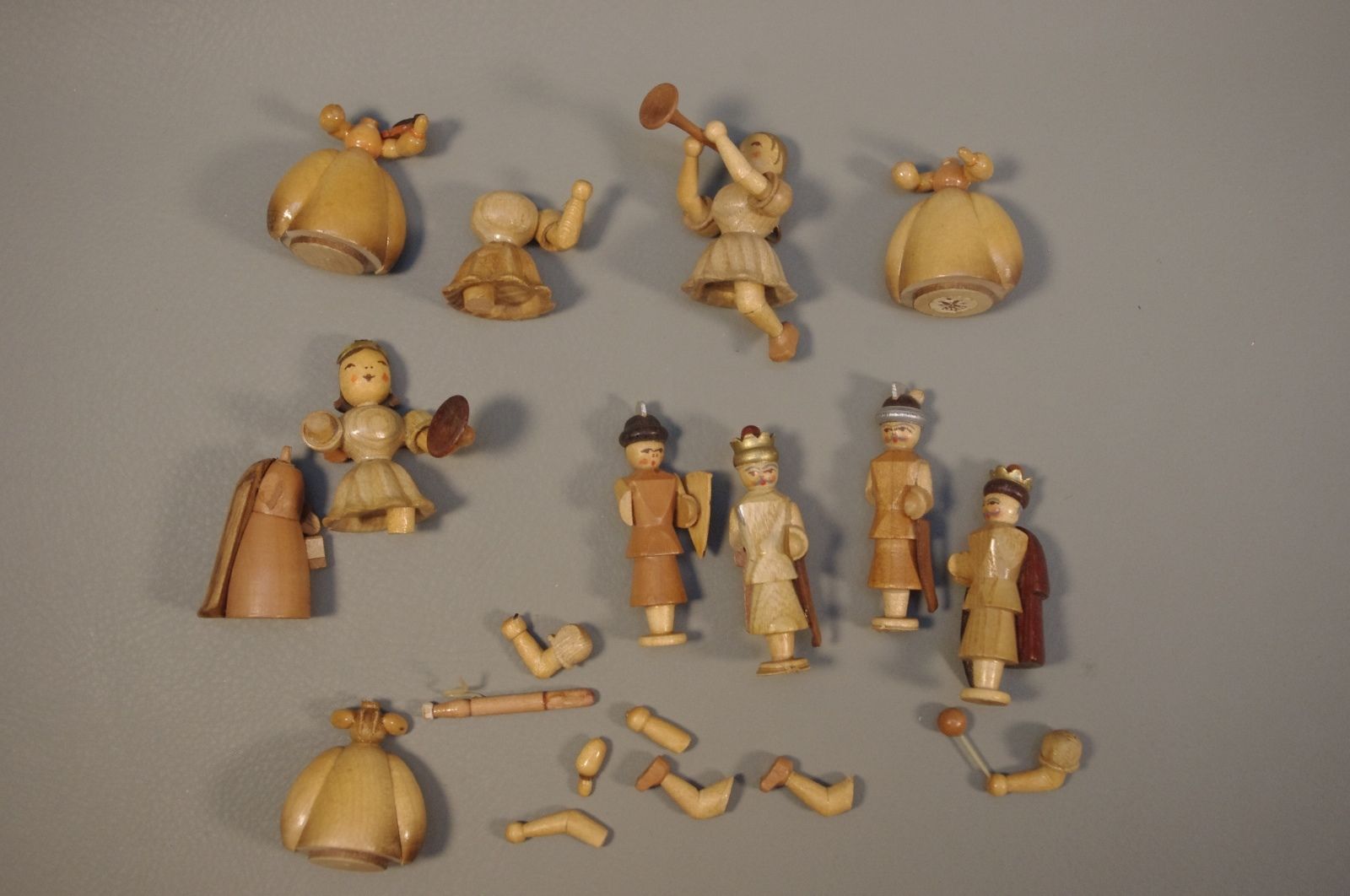 Title (ebay affiliate link): Group of Erzgebirge Germany Mini Varnished Wood Angels and Warriors for Repair