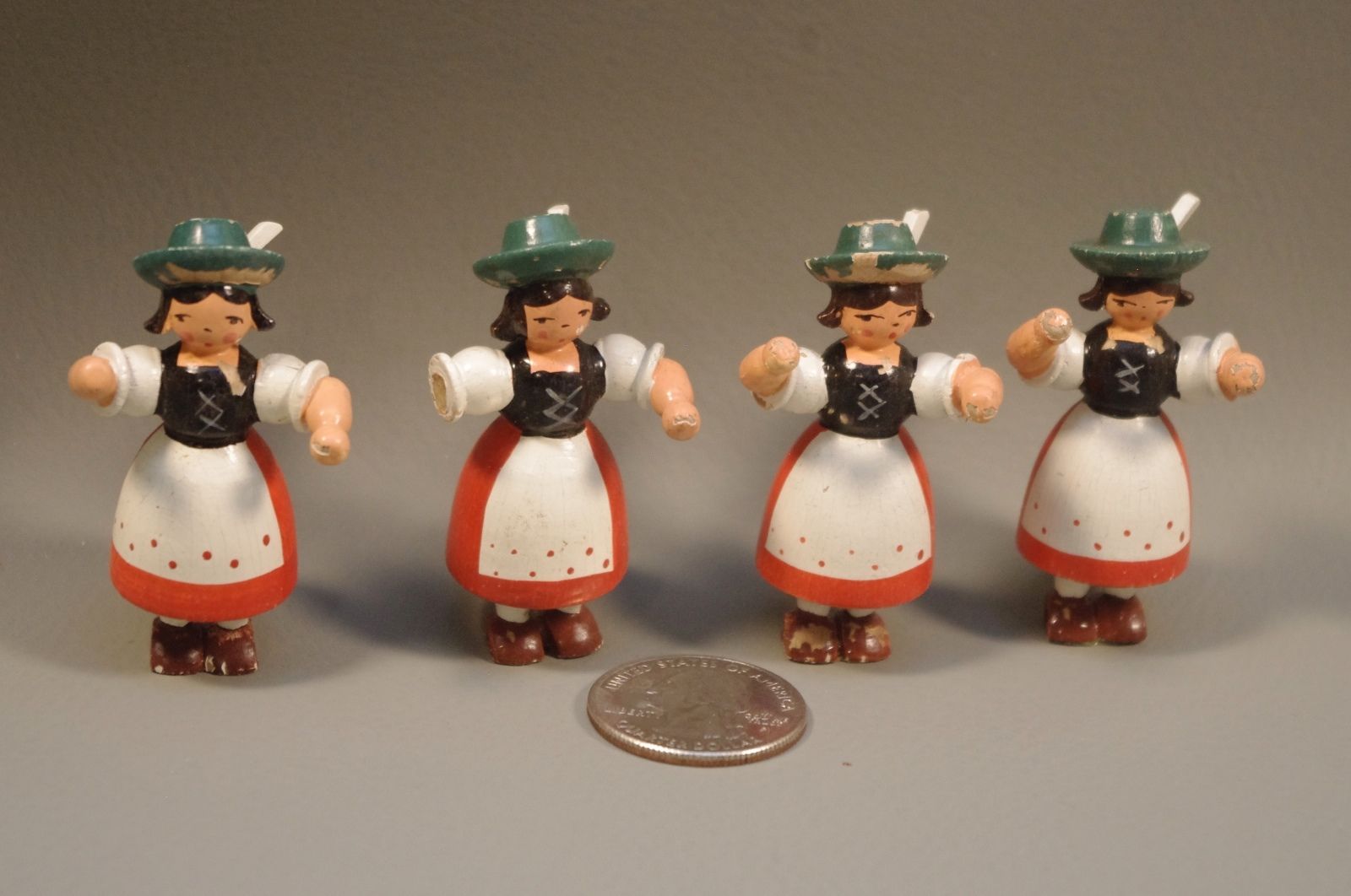 Group of 4 Miniature Wood Erzgebirge Village Women for Repair 2"H
