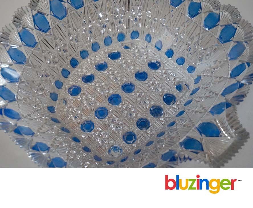 Unusual Large Antique Fan & Button Glass Blue Flash Napy Bowl