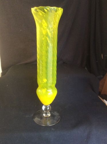Title (ebay affiliate link): BIG 15" Early 20th C. Yellow Art Glass Vase On Applied Clear Footed Base.