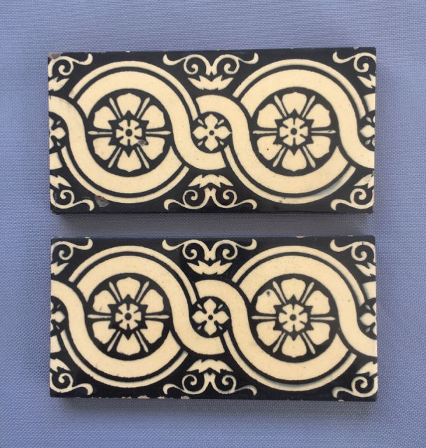 Title (ebay affiliate link): 2 Minton Hollins & Co. Stoke-on-Trent Antique Tiles, 6"x3" Floral and Geometric
