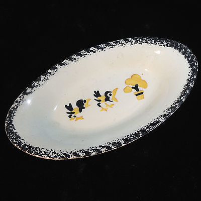 French Miniature Pickle Dish FUNNY BIRDS POTTED PLANT c1900 Faience Spatter Toy