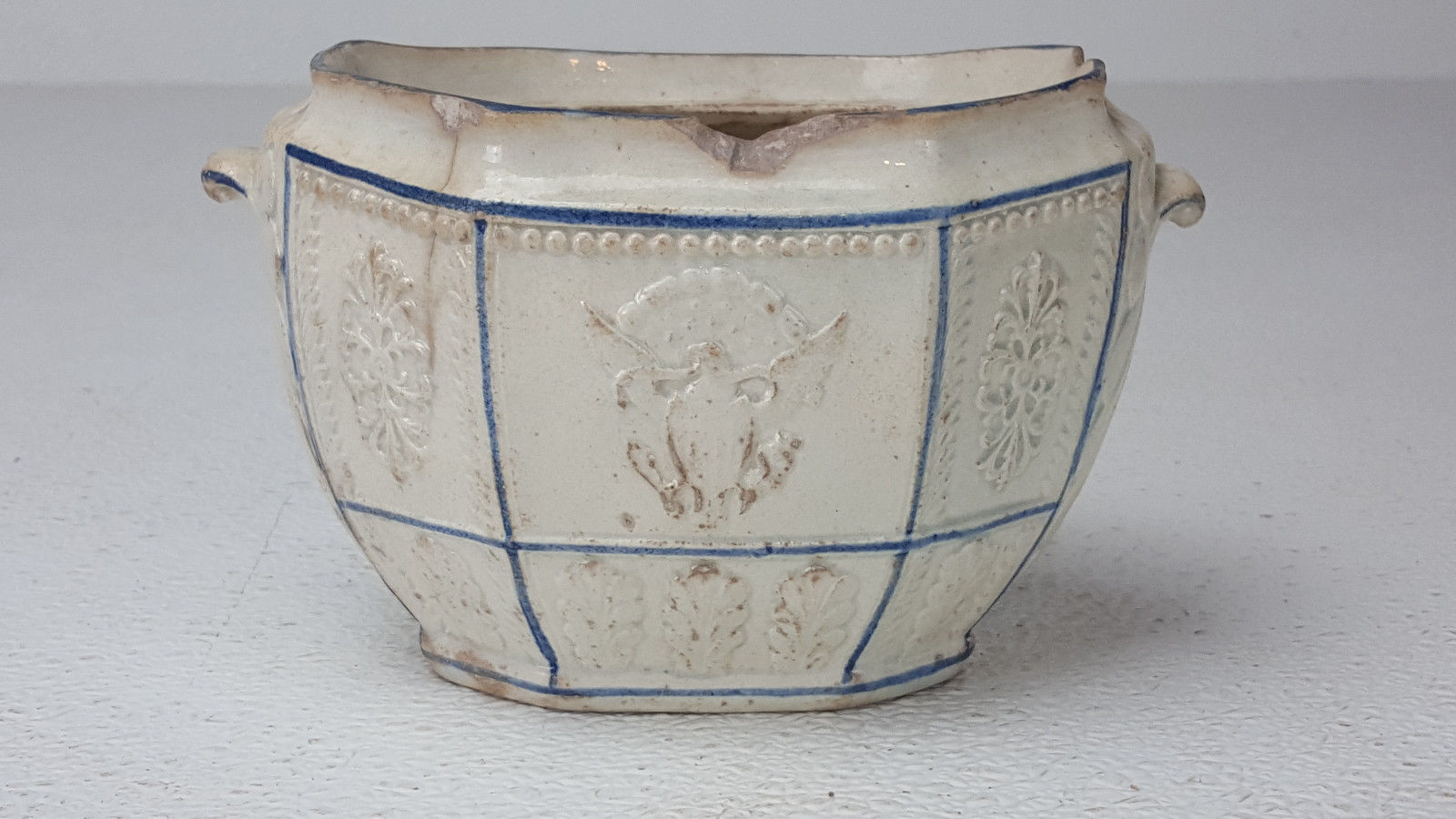 Antique Relief Molded Pearlware Sugar Bowl Eagle Blue Paint