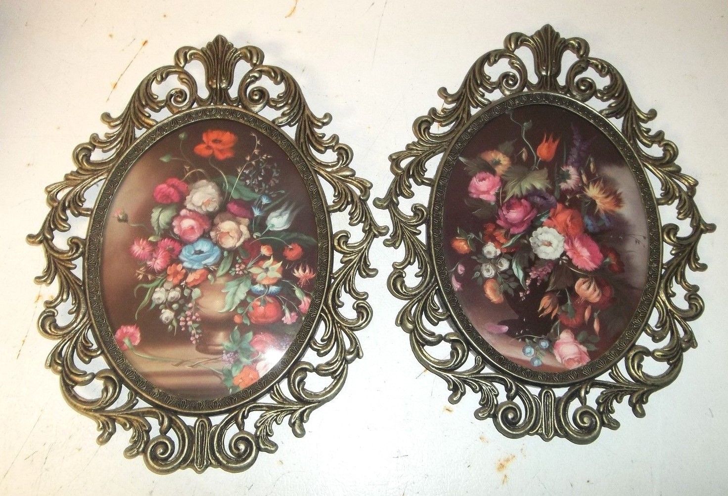 Title (ebay affiliate link): 2 Antique/Vintage Metal Ornate Framed Bubble/Convex Glass Flower/Floral Pictures