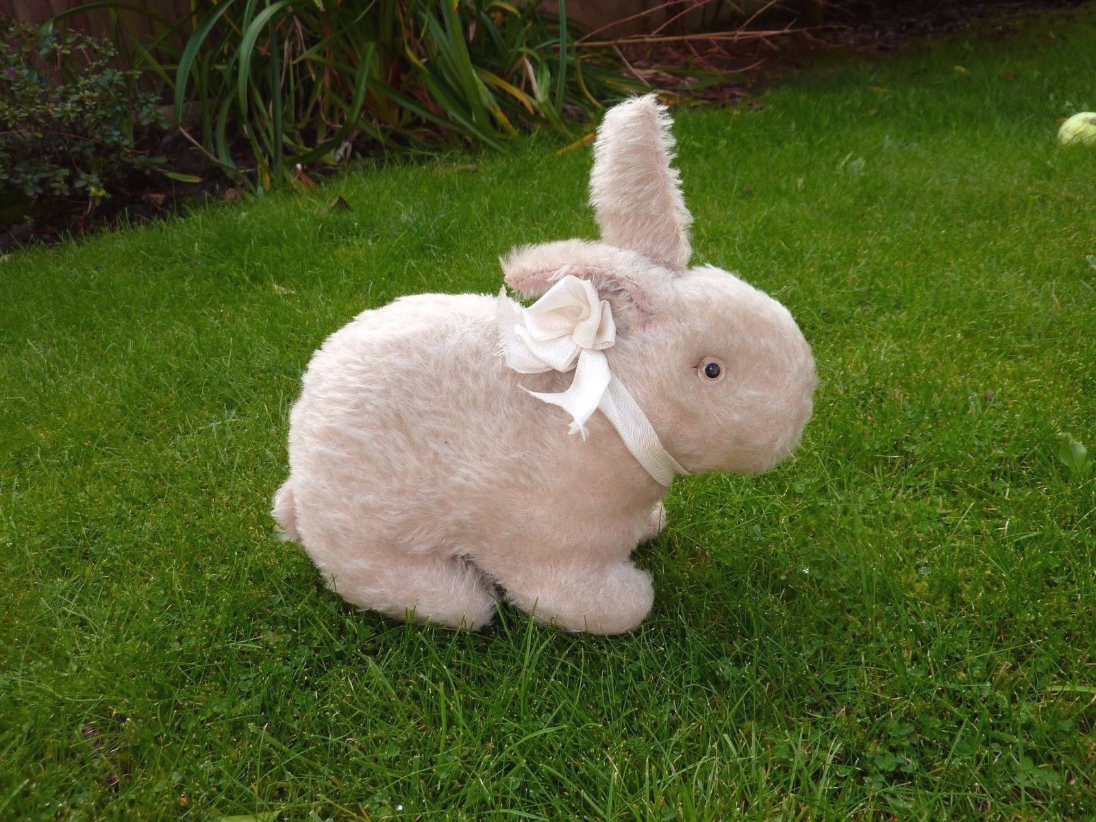 Title (ebay affiliate link): ANTIQUE VINTAGE WHITE MOHAIR BUNNY RABBIT WITH PINK EARS & GLASS EYES