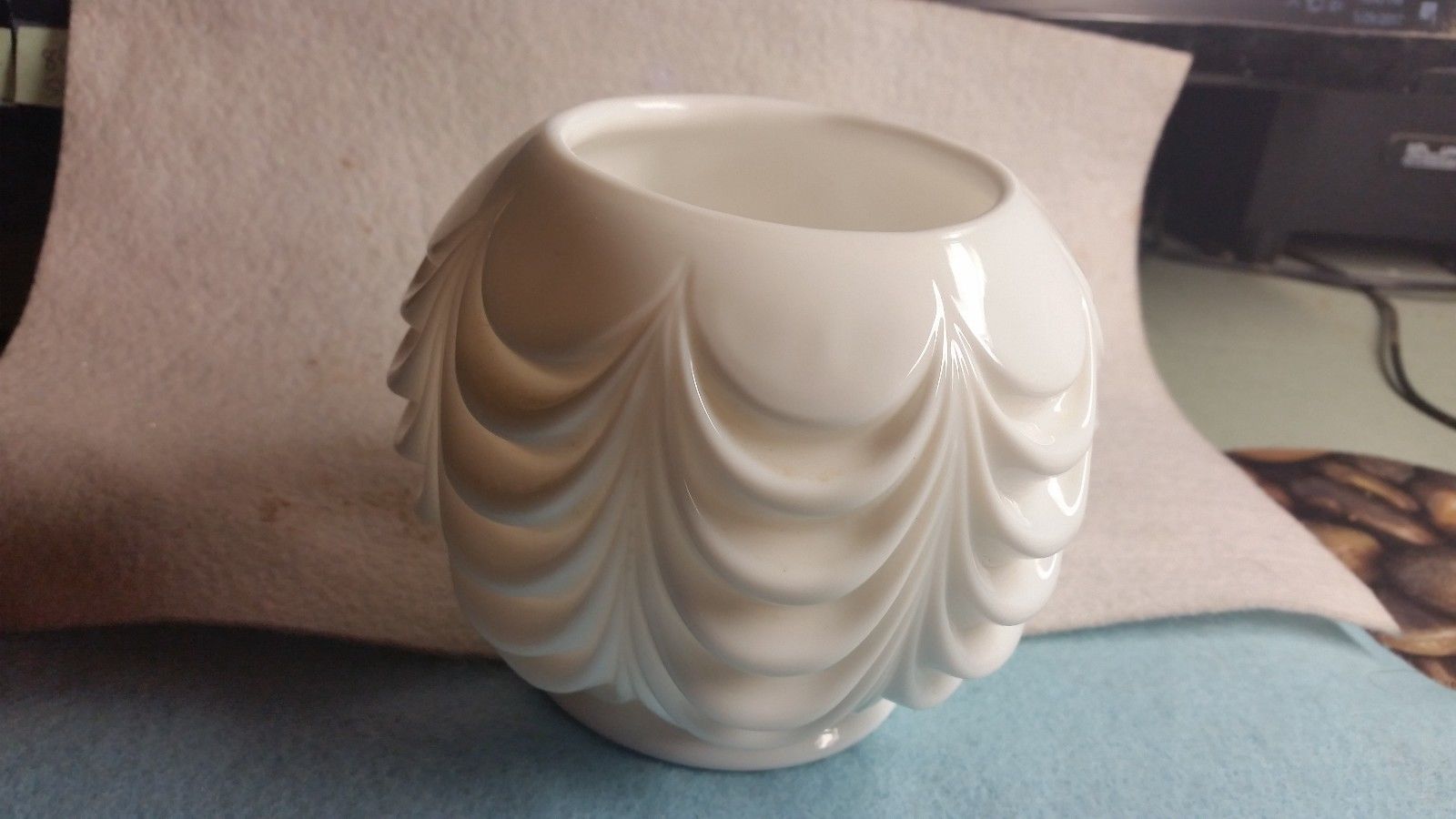 Vintage, 5 Inch High Very unusual Milk Glass Ribboned Waved Planter/Vase