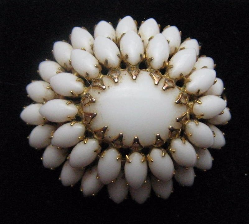 Title (ebay affiliate link): Vintage Brooch Pin White Milk Glass Flower Rhinestone Gold tone Jewelry lot m