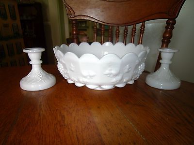 Paneled Grape Milk glass Bowl and Candle Set westmoreland glass