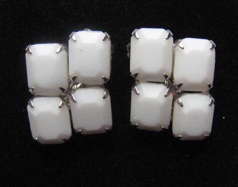 Title (ebay affiliate link): Vintage Earrings SIGNED WEISS White Milk Glass Rhinestone Clipon Silver tone