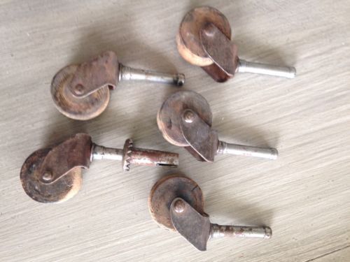 Set of 5 Antique Wooden Caster Wheels