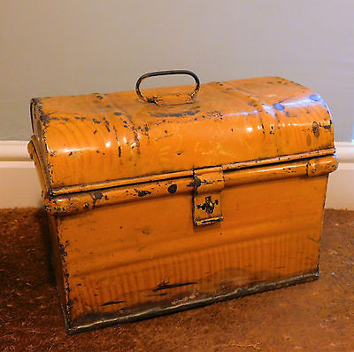 Vintage Industrial Look Metal Painted Box Clasp and Handle at top Rustic tan