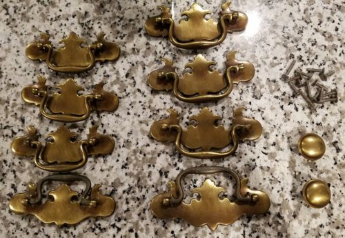 Title (ebay affiliate link): Lot 10 antique vintage brass pulls and knobs furniture hardware