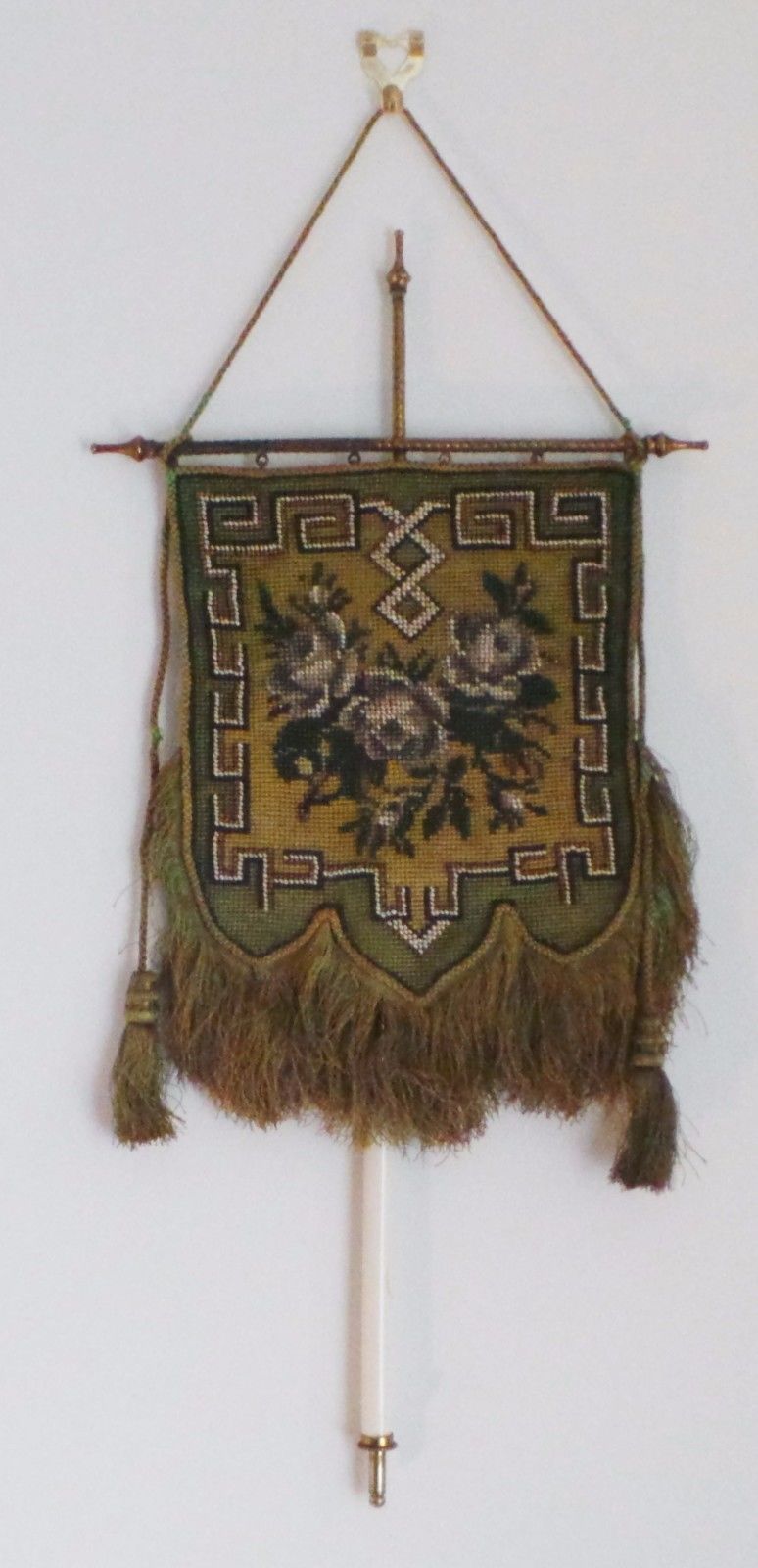 Title (ebay affiliate link): VICTORIAN BEADWORK FACE / POLE FIRE SCREEN - BRASS & CERAMIC HANDLE c1880''s