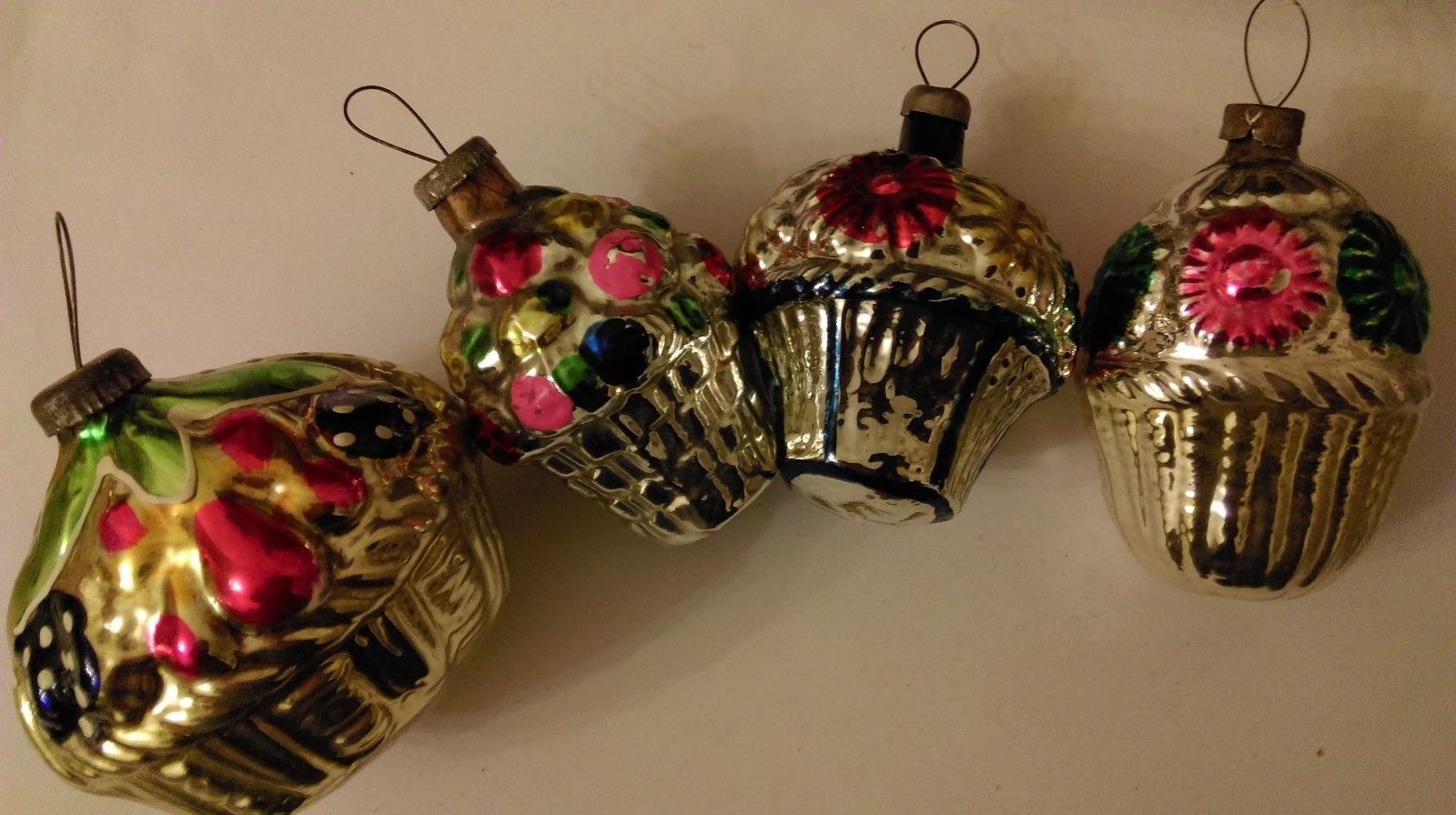 Title (ebay affiliate link): Antique CHRISTMAS silver glass ornaments 4 BASKETS