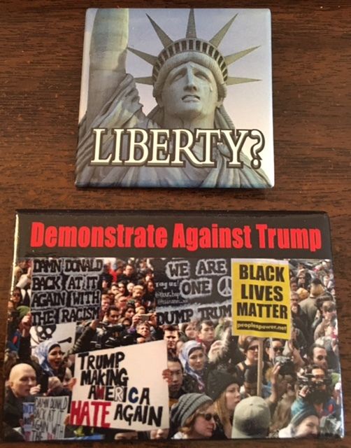 Title (ebay affiliate link): Crying Statue of Liberty and Demonstrate Against Trump Pinback Buttons