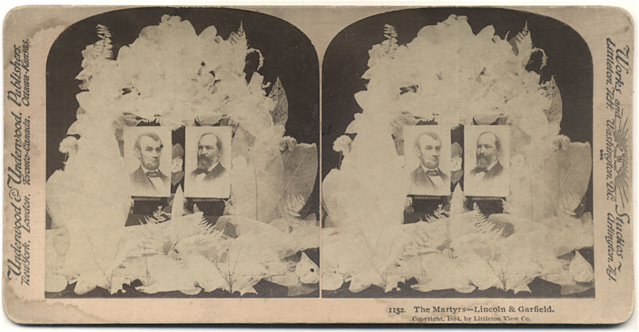 Title (ebay affiliate link): 1884 LITTLETON Stereoview SKELETON Phantom LEAVES The Martyrs LINCOLN & GARFIELD