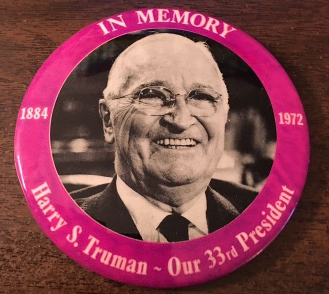 Title (ebay affiliate link): 3 1/2" In Memory Harry S. Truman - Our 33rd President Pinback Button