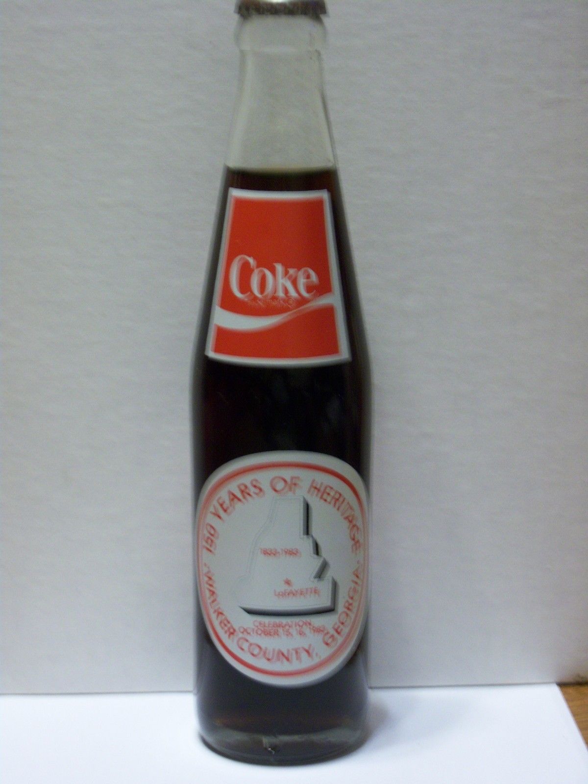 Title (ebay affiliate link): 10 OZ COCA COLA COMMEMORATIVE BOTTLE - 1983 WALKER COUNTY GA 150 YEARS