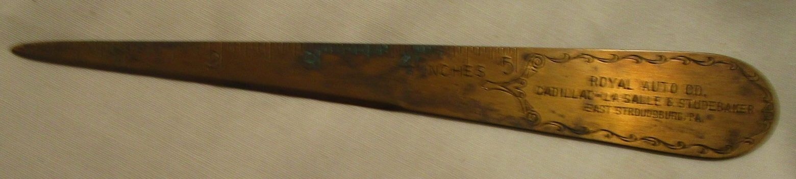 Title (ebay affiliate link): Early Royal Auto E Stroudsburg La Salle Cadillac Studebaker Letter Opener Ruler