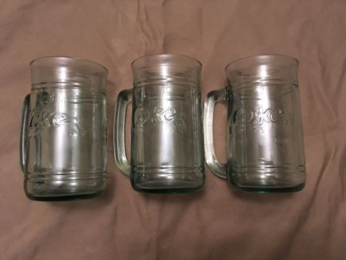 Title (ebay affiliate link): Set of 3 / Vintage Green Tinted Coke / Coca-Cola Glass Mug with Handle 16 oz