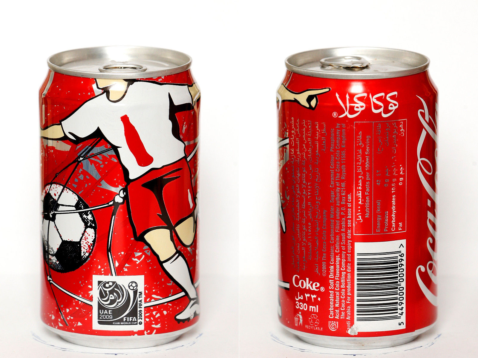 Title (ebay affiliate link): 2009 Coca Cola can from Saudi Arabia, UEA 2009 FIFA Club World Cup