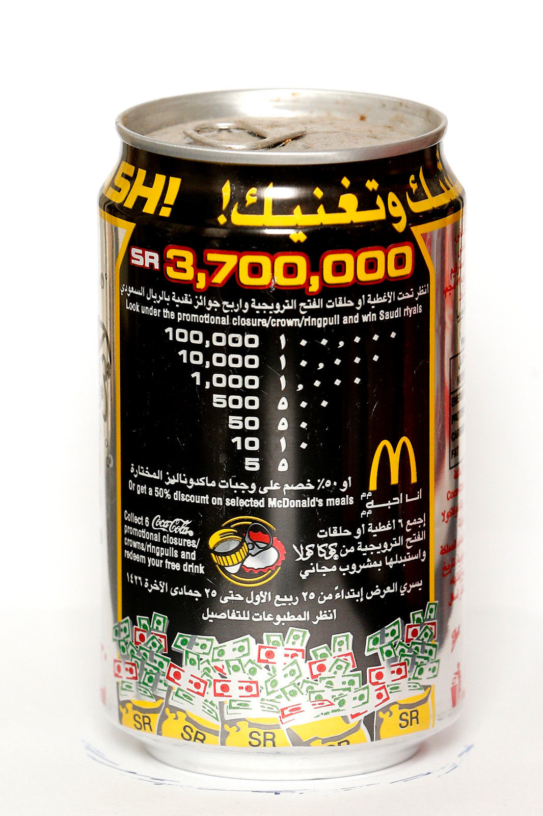 Title (ebay affiliate link): 2005 Coca Cola Light can from Saudi Arabia, SR 3,700,000 / McDonald''s