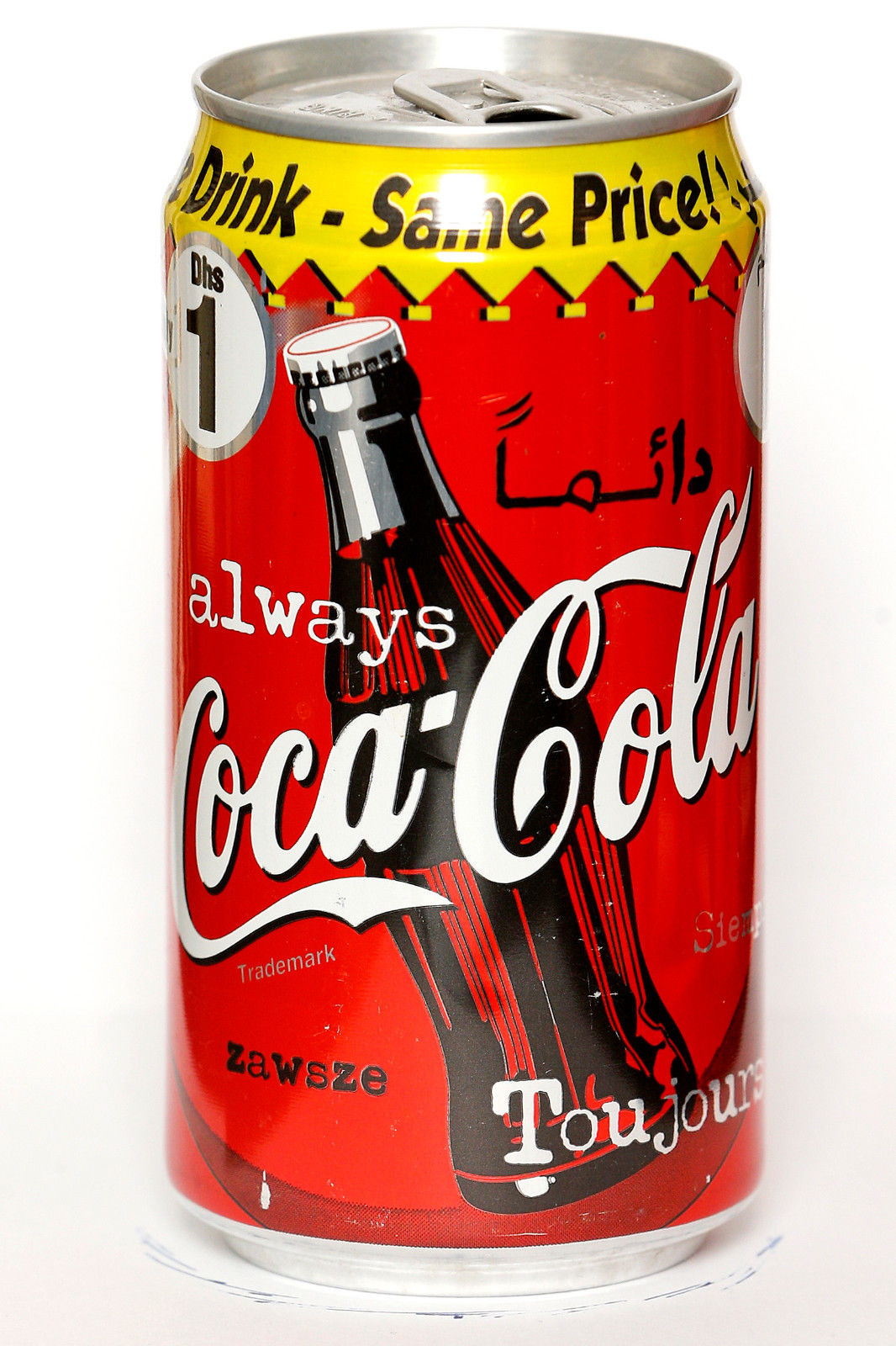 1997 Coca Cola can from the UAE, More Drink - Same Price / Only 1 Dhs
