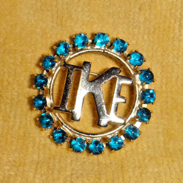Title (ebay affiliate link): Vintage IKE Brooch Dwight D. Eisenhower Blue Beads Goldtone Campaign Jewelry