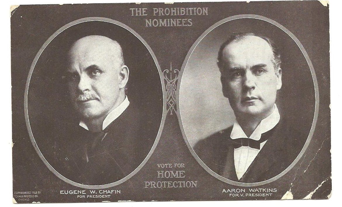 Title (ebay affiliate link): EUGENE CHAFIN, WATKINS PROHIBITION PARTY POLITICAL JUGATE POSTCARD