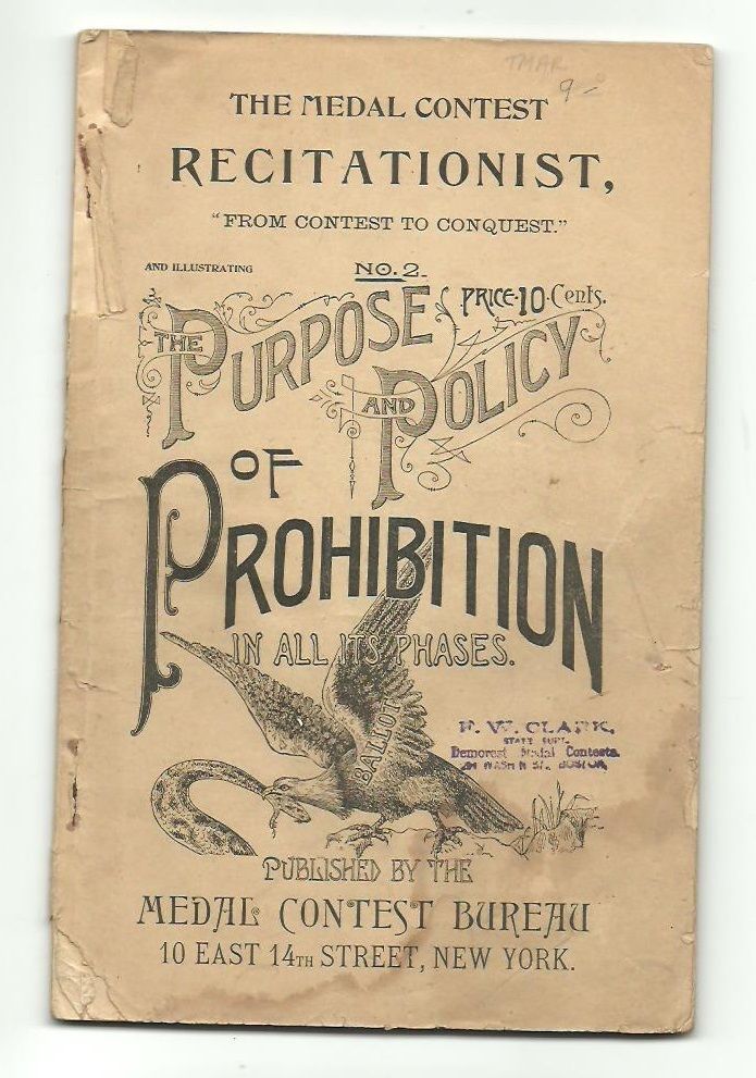Title (ebay affiliate link): PROHIBITION MEDAL CONTEST RECITATIONIST 1893 UNUSUAL TEMPERANCE BOOKLET